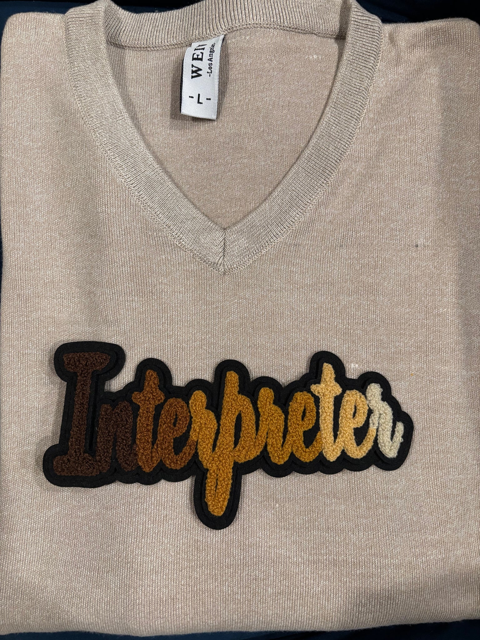 Celebrate identity, pride, and community with our "Interpreter" Chenille Iron-On Patch, designed in rich, multi-color textures that beautifully represent heritage, school spirit, and personal style. Crafted with plush chenille detailing, this patch adds a bold, elevated look to jackets, bags, hats, and more—making it easy to customize your apparel with meaning and color.